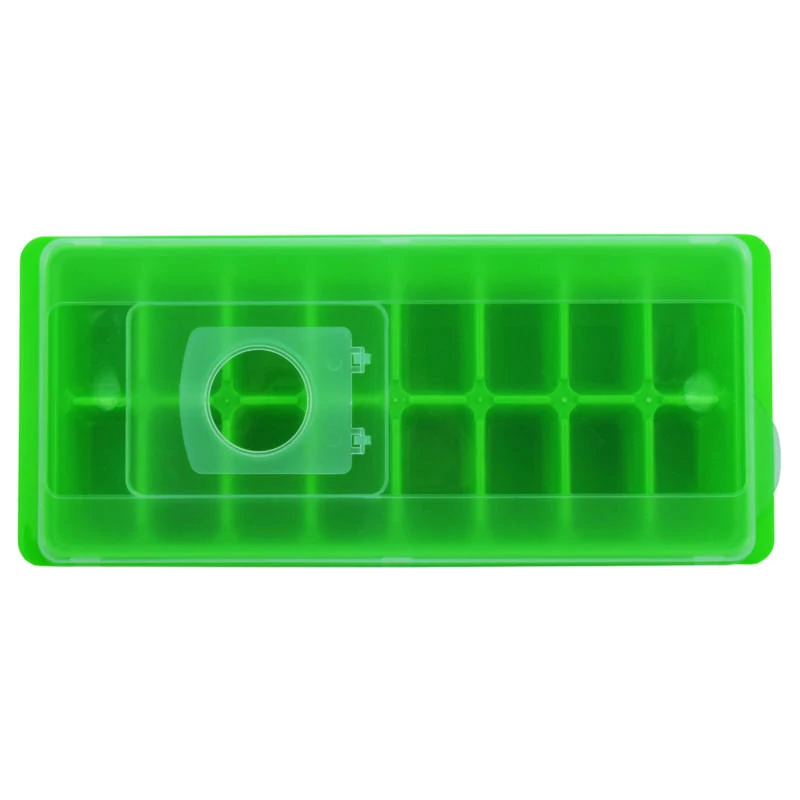 Ez a 16 részes jégkocka tartó műanyagból készült, fedővel ellátva, amely megakadályozza a jégkockák kilöttyenését a töltés során. A fedél azonban nem alkalmas arra, hogy azt fogva emeljük meg a tartót. A kompakt méretű (26 x 11 x 4,5 cm) jégkockatartó egyszerre 16 jégkockát készít, így gyorsan és egyszerűen biztosítja a hideg italokhoz szükséges jeget.