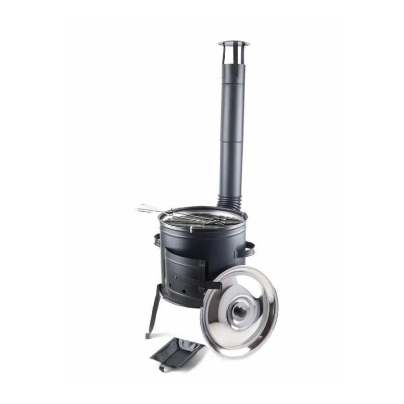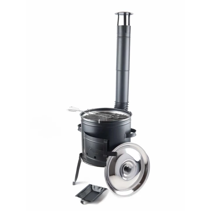 A szett részét képezi a 37 cm-es rozsdamentes fedő, grillcsipesz, füstcsövek, könyök, kupak és hamutartó is – minden, ami egy teljes kerti sütögetéshez szükséges. A grillrács strapabíró krómozott acélból készült, könnyen tisztítható, így hosszú távra tervezhetsz vele.