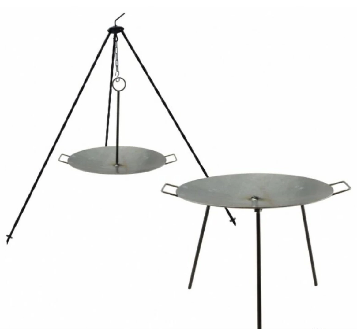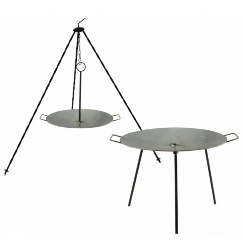 Két módon használható: hagyományos 3 lábú tárcsaként és bogrács állványra is akasztható