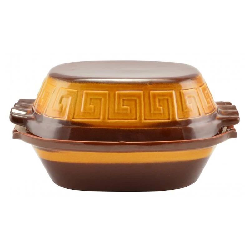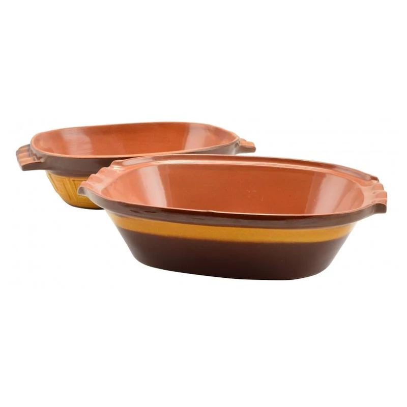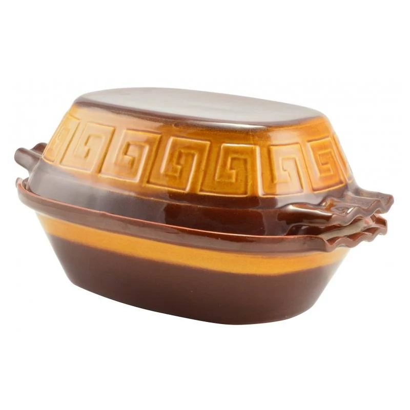 Agyag római tál mázas 4 literes Anyaga: mázas agyag Mérete: belső: 21*27*8 cm; külső: 23,8*31,7*8,5 cm, 16 cm magas fedővel Űrtartalom: 4 liter Súlya: 2,2 kg Tisztítása: bő meleg vízbe áztassa be, majd távolítsa el a szennyeződést szivaccsal vagy kefével. Törölje szárazra, majd 24 órán át hagyja kiszáradni. Mosogatógépben nem mosható! Használata: az edényt első alkalommal 30 percig, további sütések alkalmával 15-60 percig hideg vízben áztassa. Az edényt mindig hideg sütőbe, rácsra tegye, és fokozatosan melegítse a kívánt sütési hőmérsékletre. A forró edényt ne hűtse hirtelen, fa deszkára, hőálló alátétre vagy száraz ruhára helyezze! Az edény sütőben való használatra alkalmas. Nyílt lángon használni szigorúan tilos! Nyílt láng használatakor esetleg az edény alá helyezett fémlemez lehet megoldás. |