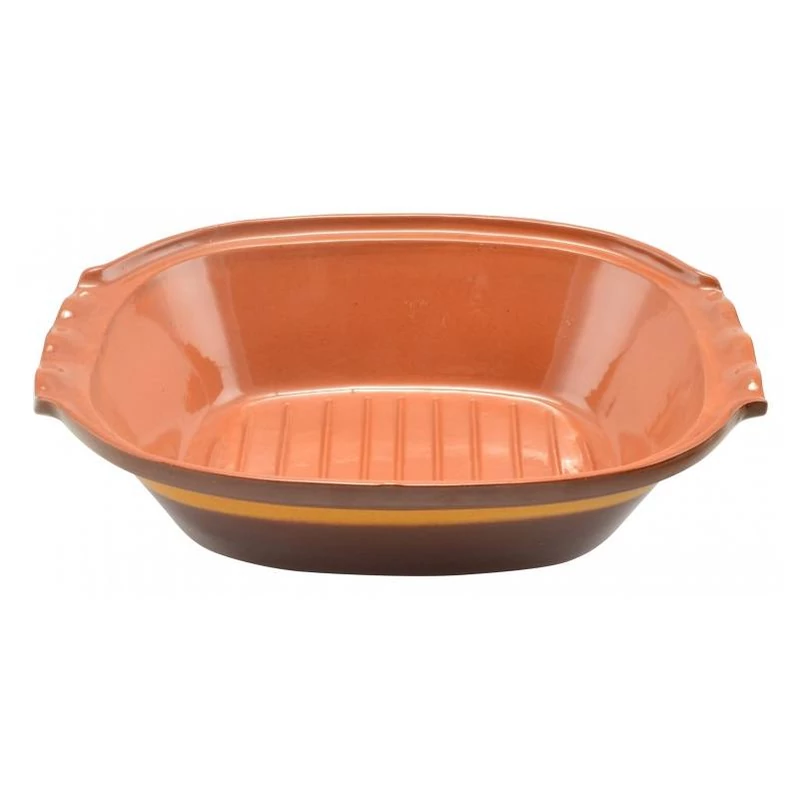 Használata: az edényt első alkalommal 30 percig, további sütések alkalmával 15-60 percig hideg vízben áztassa. Az edényt mindig hideg sütőbe, rácsra tegye, és fokozatosan melegítse a kívánt sütési hőmérsékletre. A forró edényt ne hűtse hirtelen, fa deszkára, hőálló alátétre vagy száraz ruhára helyezze!