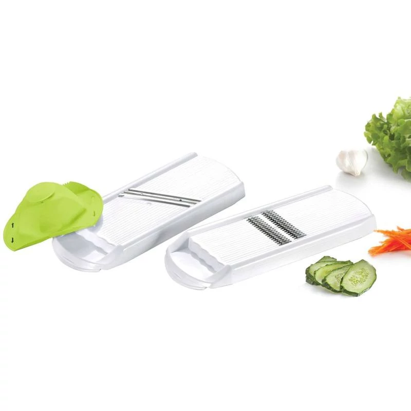 A DOMOTTI Aletta 3 részes zöldségreszelő és szeletelő minden konyha elengedhetetlen kelléke. A rozsdamentes acélból készült pengék hatékonyan dolgozzák fel a zöldségeket, míg a minőségi műanyag fogó és stabil keretkényelmes és biztonságos használatot biztosít.