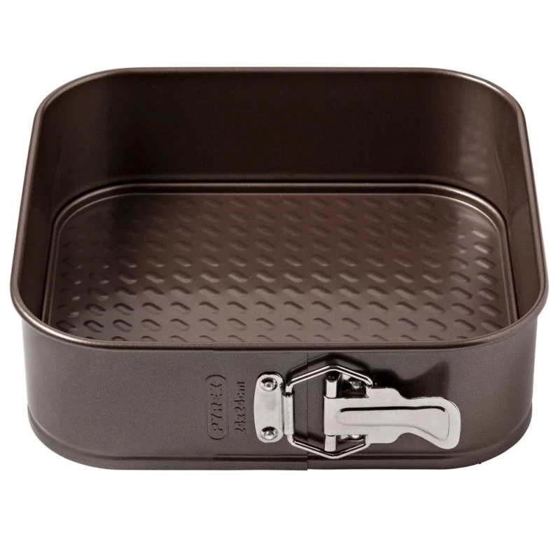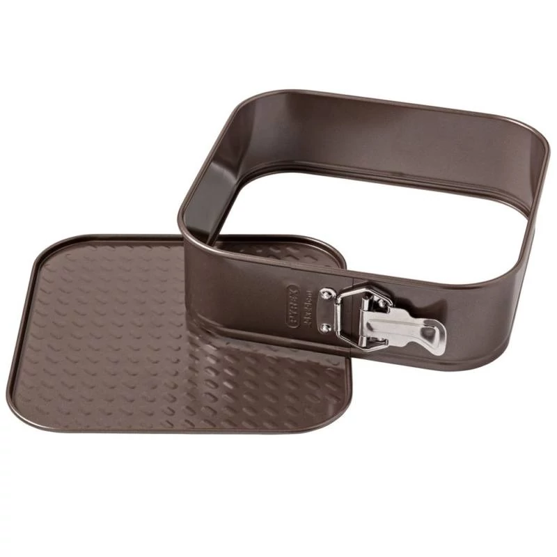 Tapadásmentes bevonattal ellátott kocka, csatos tortaforma Színe: barna Használható -40 C-tól +230 C közötti hőmérsékleten Mosogatógépben mosható Anyaga: szénacél, tapadásmentes bevonat Súlya: 470 gramm Tisztítása: semleges folyékony mosogatószerrel. Ne használjon karcolódást okozó szereket és eszközöket!