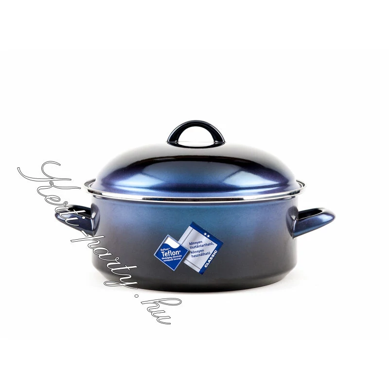 Az acéltest mindkét oldalára két réteg zománc kerül. A belső főzőfelületre a nem tapadó tulajdonságot biztosító Teflon anyagot két rétegben égettük rá. Az edény konstrukciója és a többi rétegű szendvics szerkezet igen jó felfekvést és kiemelkedően jó hőelosztást biztosít a fenéken, csökkentve ezzel a leégés veszélyét. A bevonat alatti kemény zománc a mechanika hatásokkal szembeni jó ellenállása révén növeli a bevonat élettartamát és véletlen szerű sérülés esetén is védi az ételt a fémmel történő érintkezéstől. Ha megfogadja a használatra vonatkozó tanácsokat e termék sokáig megkönnyíti Önnek egészséges,zsírszegény ételek készítését.