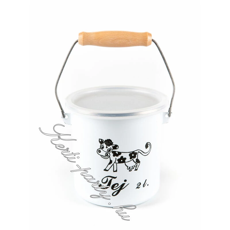 Bonyhádi tejeskanna ,műanyag fedővel 1.osztályú Magyar termék! Űrtartalma: 2liter Acélperemmel, Anyaga: zománcozott lemez. Méretei: Átmérője: 16cm Magassága fedővel: 16cm Súlya: 810gramm |