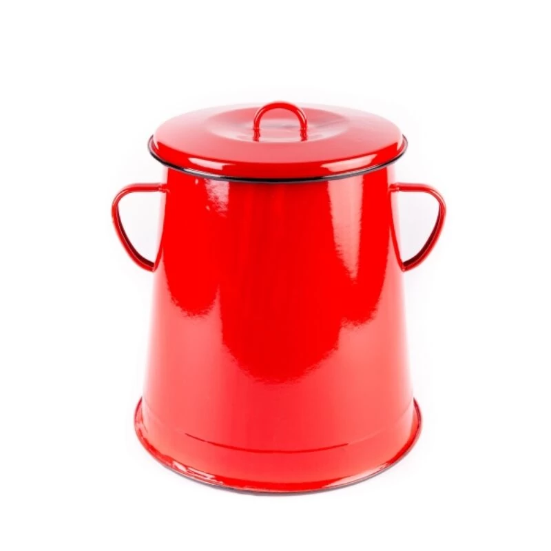 Bonyhádi hagyományos, piros színű zománcozott zsírosbödön a disznóvágások kihagyhatatlan kelléke! Az egyenes falú tárolóbödön űrtartalma 20 liter,