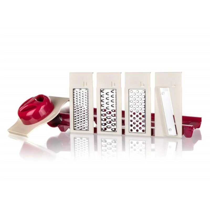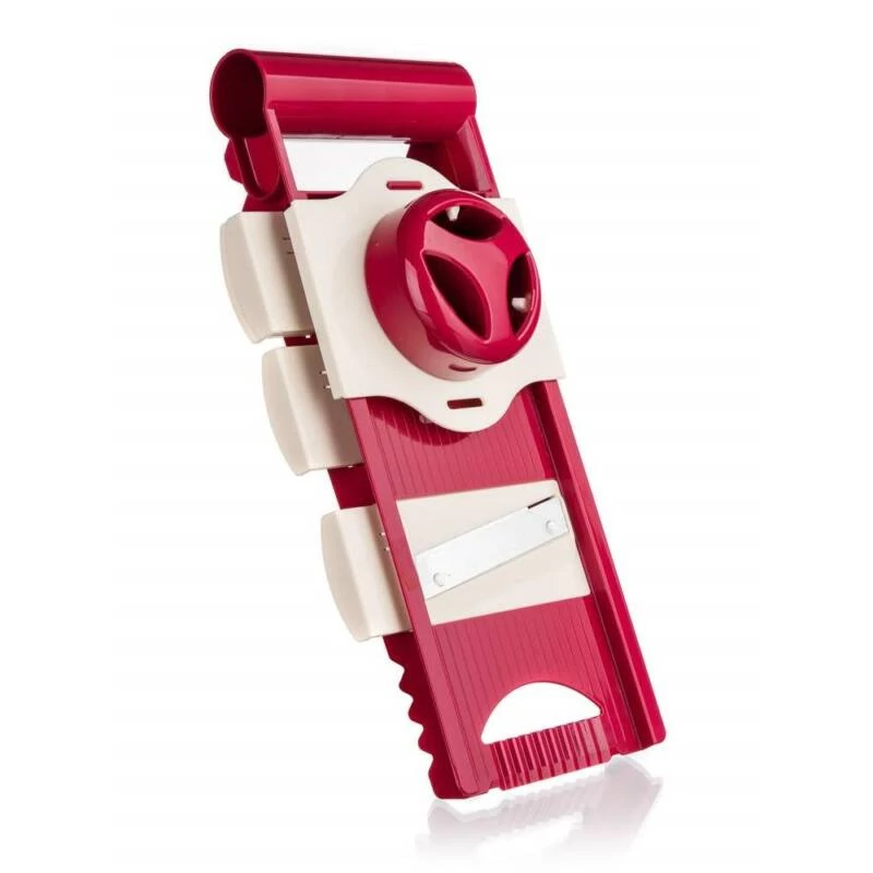 A Culinaria bordó multi szeletelő kiváló választás mindazoknak, akik gyorsan, precízen és biztonságosan szeretnének szeletelni a konyhában. A 5 cserélhető rozsdamentes acél betét segítségével különféle zöldségeket, gyümölcsöket, kemény sajtokat vagy akár csokoládét is könnyedén felapríthat.
