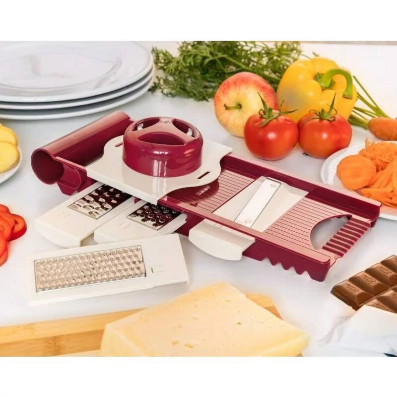 Culinaria bordó multifunkciós szeletelő 5 cserélhető betéttel – zöldségek, sajtok, csokoládé szeleteléséhez, biztonságosan és gyorsan. Rozsdamentes acél pengékkel, ujjvédővel. |
