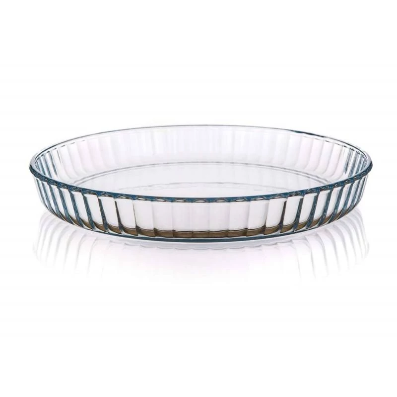 Pizzasütő / pitesütő forma 28 x 4 cm, mechanikus és hőhatásokkal szemben rendkívül ellenálló kemény boroszilikát üvegből készül. (hőállóság +220 / -12 °C).