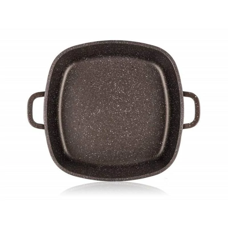 A DARK PREMIUM GRÁNIT SÜTŐTÁL egy 28 x 28 x 8 cm méretű, öntött alumíniumból készült, kétszeres márványstruktúrás tapadásmentes belső bevonattal ellátott edény, amely nemcsak esztétikus, de rendkívül praktikus és tartós is.