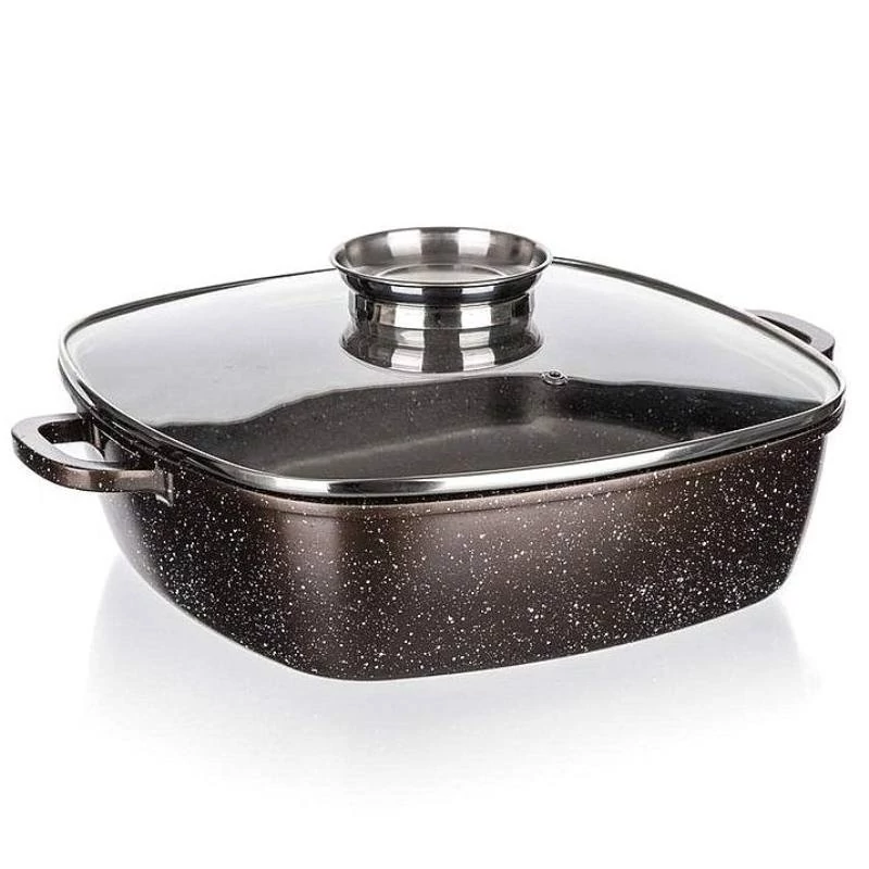 Prémium minőségű, tapadásmentes gránitbevonatú sütőtál, amely ideális választás sütéshez, pároláshoz vagy tálaláshoz. A modern megjelenésű, barna színű, szögletes forma fedővel és indukciós kompatibilitással párosul.