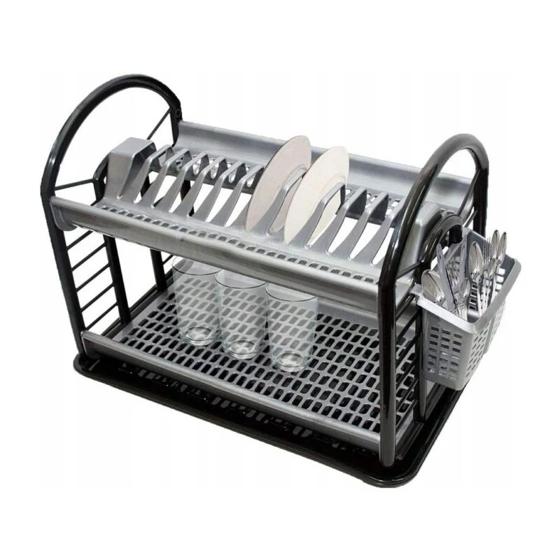 | Emeletes edényszárító 46.5x30.5x34 cm Tálca + oldalsó eszköztartóval 50.8 cm hosszú Anyaga: műanyag , BPA mentes Paraméterek