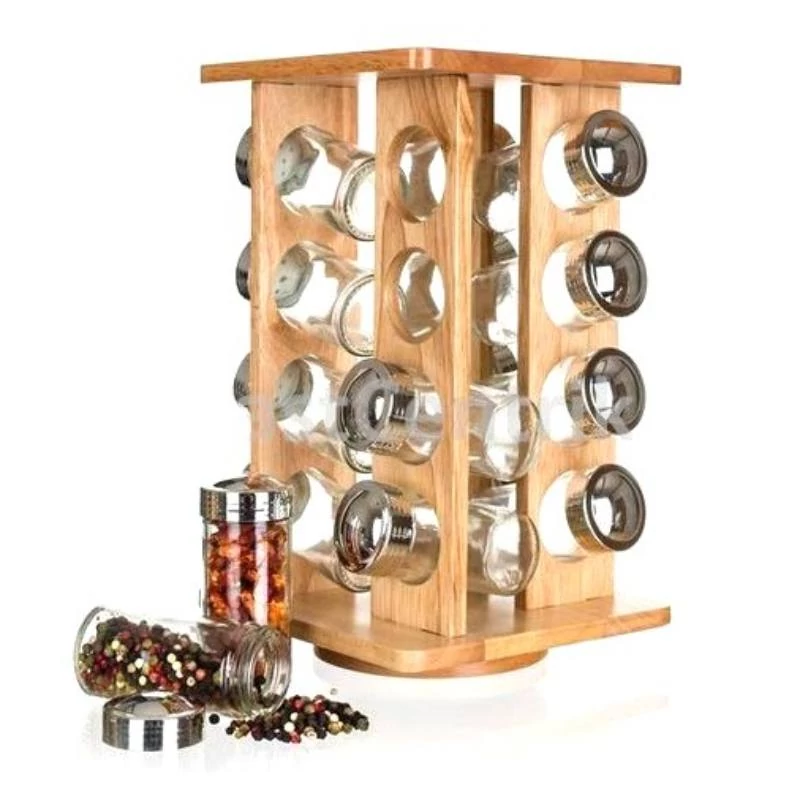 Fűszertartó 16db-os állvánnyal A 16 részes Brillante fűszertartó készlet tartalma: 16 db üveg fűszertartó krómozott felületkezelésű műanyag fedéllel, 1 db 16,5 x 16,5 x 30,3 cm-es forgatható fa állvány. Az állvány gumifából készül. A gumifa egy első osztályú természetes kemény nemes fa, mely nem nyeli el a port és nem szívja magába a folyadékokat. Nem hajlamos a vetemedésre és a repedésre. Az egyik környezetre leginkább ártalmatlan fa fajta! Anyag: Gumifa / Üveg | Szín: Természetes | Mosogatógép: Nem Méret: 30,3*16,5*16,5 cm Anyaga: fa, üveg 1 darab üvegcse mérete: 10.3 cm x 4.3 cm Tisztítás: semleges, folyékony mosogatószerrel, kerülje a karcolódást okozó tisztítószerek, és eszközök használatát! Súly: 2535 gramm |