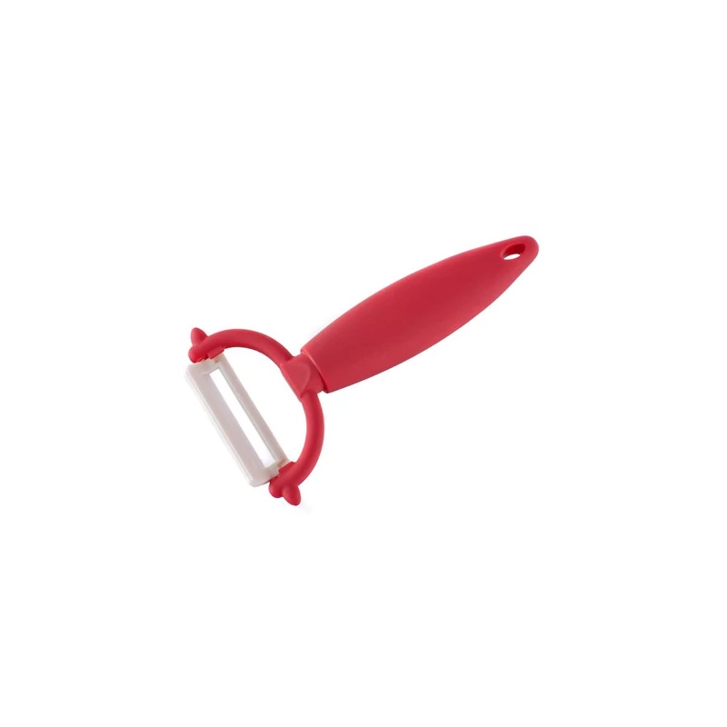 GOURMET CERAMIA ROSSA hámozó 14 cm, fehér kerámia penge (cirkónium-dioxid) 4 cm, vastagsága 0,8 mm, piros színű műanyag markolat (TPR). A penge rendkívül sokáig megtartja az élét és nem károsítja az élelmiszerekben található vitaminokat és enzimeket.