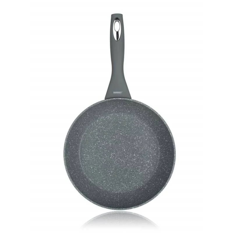 GRANITE GREY kovácsolt alumíniumöntvény serpenyő 28 x 5,3 cm tapadásmentes bevonattal, szürke gránit minta, falvastagság 3 mm, soft-touch nyél.