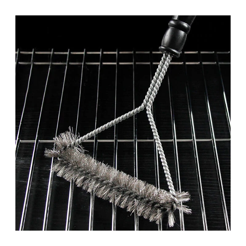 A grillezés élménye tiszta eszközökkel kezdődik! A háromszög kialakítású grilltisztító kefe praktikus méretével és erős, acélpengével kiválóan alkalmas a grillrács hatékony tisztítására.