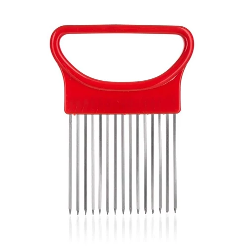 Használható: megkönnyíti a szeletelést. A szeletelni kívánt hagymába beszúrva a hagymatűt, egyforma méretű szeletek vághatóak.