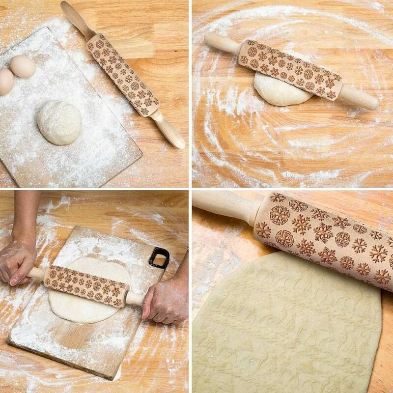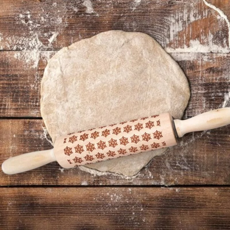 5. Alaposan lisztezett felületen nyújtsd ki 2-3 milliméter vastagra a tésztát és erőteljes mozdulatokkal mintázd meg a mintás sodrófával.