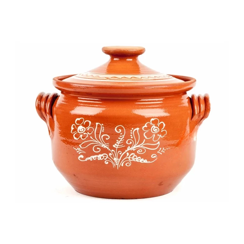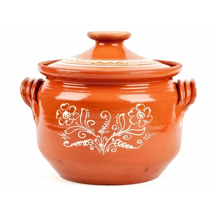 Ez a 8 literes, kívül-belül mázas cserépedény hagyományos fazekas technológiával, kézi korongozással készült. A mázas felület megkönnyíti a tisztítást, miközben az agyag természetes módon megőrzi az ételek aromáját és nedvességtartalmát.