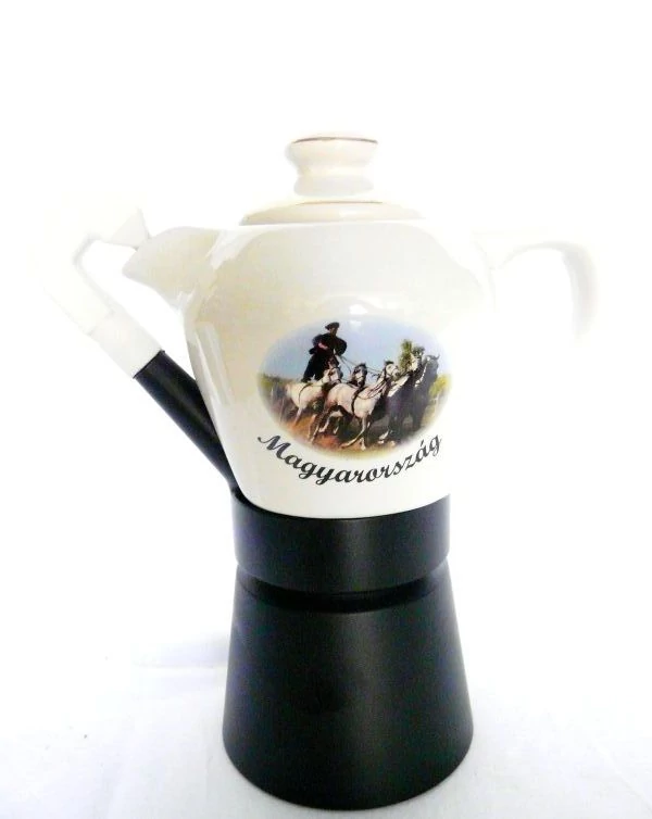 | Magyarország kávéfőző: 2-4személyes 1.osztályú Magyar Termék. Tulajdonságai: -egyszerű kezelés -hosszú élettartam -szilikonos,hőállótömítés -rugós biztonsági szelep - a felső szűrővel kettő-vagy négy személyes adag főzhető Konstrukciója kitűnő zamatú presszó kávét biztosít | |