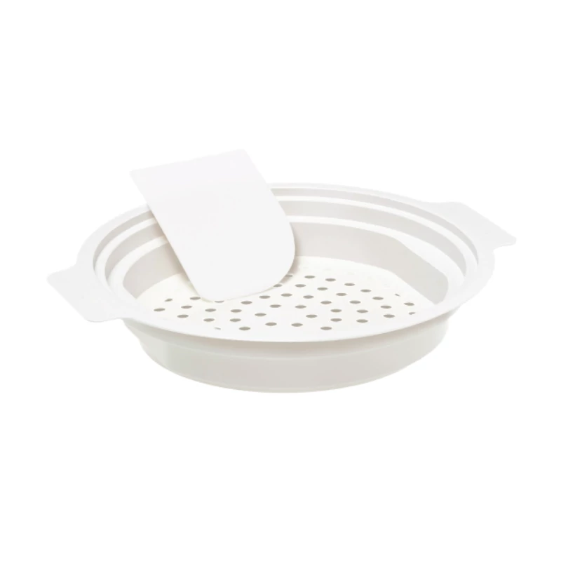 Nokedliszaggató és Pároló Műanyag lapáttal. 20cm-től 25cm-es edényekig használható, a piramis forma kialakítása miatt.