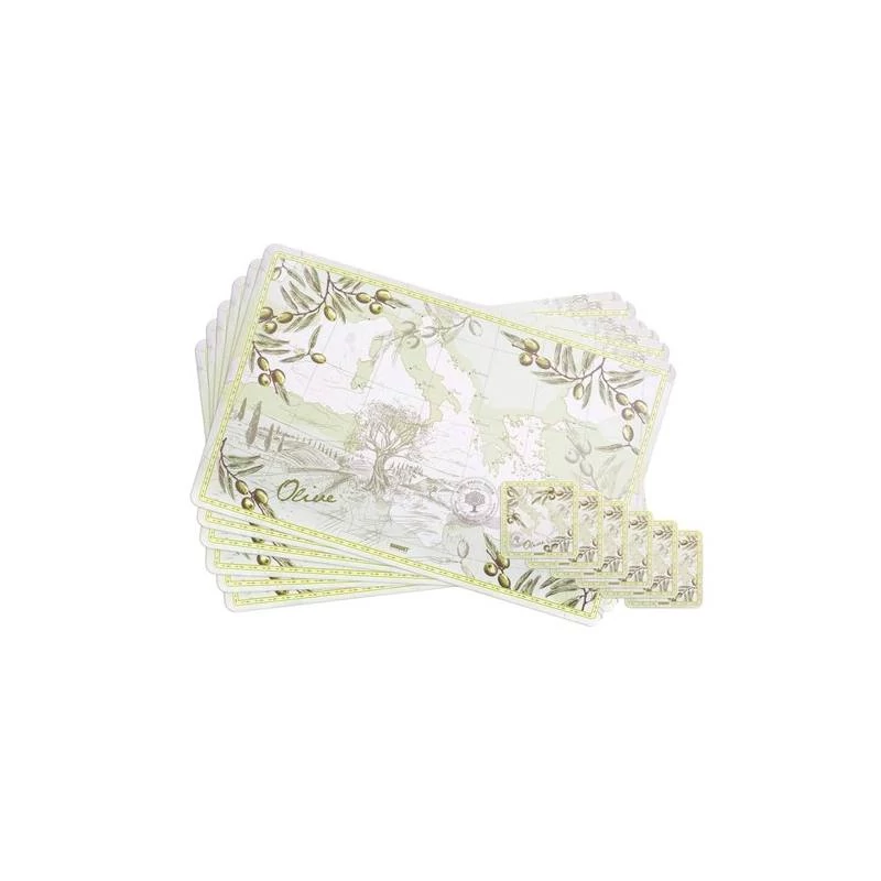 12 részes tányéralátét szett 6x 43*28cm, 6x 10*10cm OLIVES |