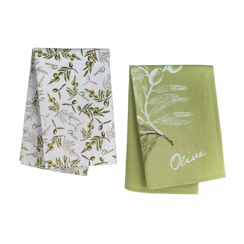 A 2 részes 45 x 70 cm méretű OLIVES konyharuha készlet 100% pamutból, 190 GSM minőség, szegett.
