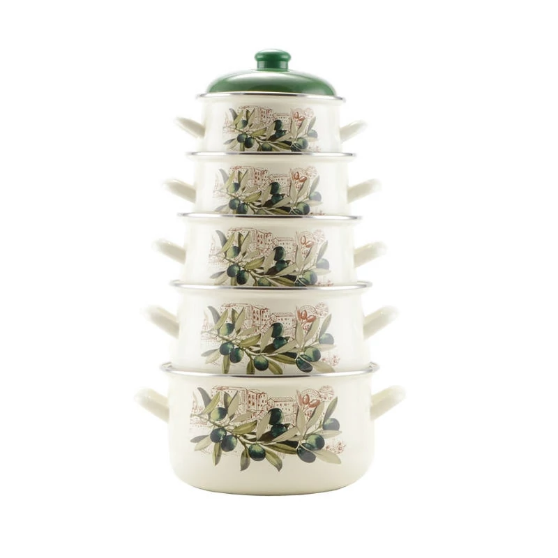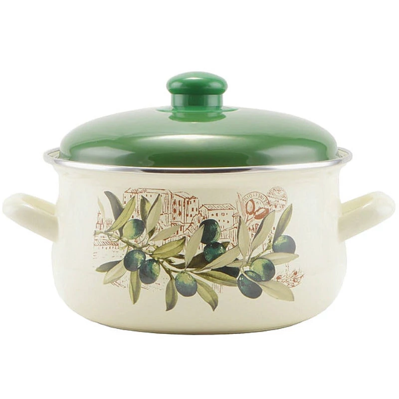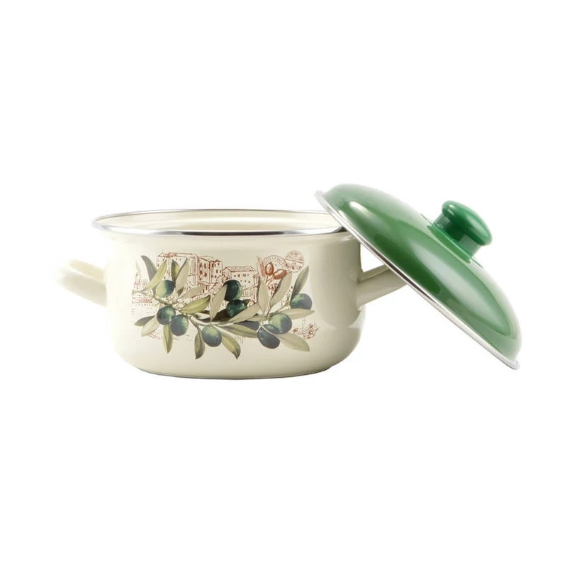 6 literes zománcozott acél lábas fedővel, olíva mintával. Használható bármilyen főzőlapon, beleértve az indukcióst is. Tartós, könnyen tisztítható, esztétikus és praktikus választás a mindennapi főzéshez. |