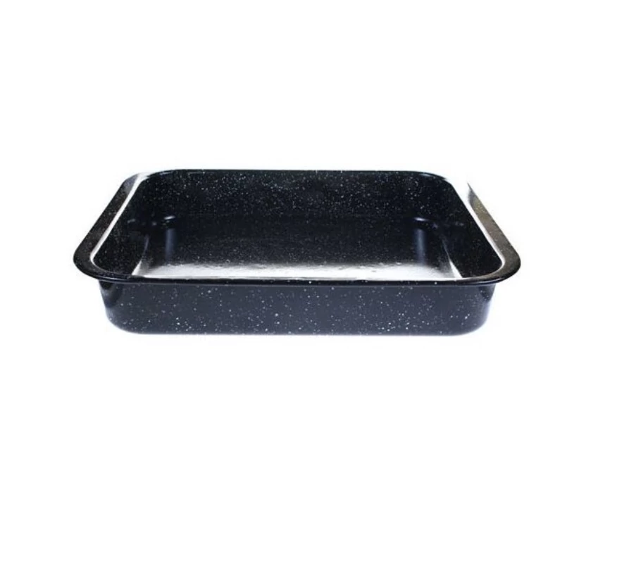 Zománcozott tepsi Pontos teljes méret: 41.7cm x 36.5cm x 7cm 1.osztályú termék. Belső mérete: 38cm x 34cm Mélység:7cm Anyaga: zománcozott acéllemez |