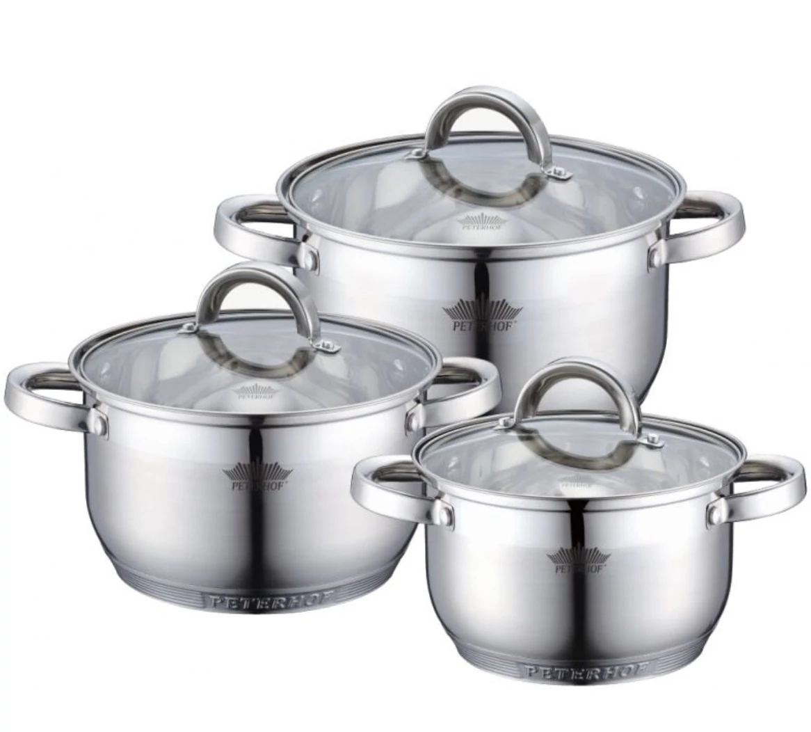 Peterhof 6 db-os edénykészlet, amely 18/10 rozsdamentes nemes acélból készült. A nemesacél edények előnye, hogy ellenállnak a korróziós hatásoknak, így azokat hosszabb ideig használhatod, mint hagyományos társaikat. Tisztításuk is egyszerűbb és könnyebb, nem lépnek reakcióba az ételeinkkel. 7 rétegű könnyűfémből készült aljjal rendelkezik. Így az edény gyorsabban felmelegszik, egyenletesen oszlatja el a hőt, ezáltal növelve az energiatakarékosságot, és csökkenti a főzés idejét. Minden főzőlapon használható és mosogatógépben is tisztítható! Inox edények Ez a termék korszerű, nem rozsdásodó nemesacélból készült. Hosszú távú, stabil minőség megtartására tervezték, maximális teljesítmény s kényelem biztosítása mellett. Ezek, mindamellett, hogy jelentősen megkönnyítik a konyhai munkát, néhány nagyon fontos kezelést, karbantartást igényelnek. Első használatot megelőzően távolítsd el az összes címkét, ragasztót és csomagolást, majd óvatosan, enyhe mosogatószeres, nem karcoló szivaccsal, meleg vízben mosogasd el. Alapos öblítés után töröld szárazra egy puha konyharuhával. Akkor járunk el helyesen, ha az inox edényeinket kevés növényi olajjal ápoljuk úgy, hogy a felesleget száraz konyharuhával letöröljük. Néhány használat után ezt ismételd meg annak érdekében, hogy a termék hosszú ideig megőrizhesse csillogását. Amennyiben az anyagot úgynevezett sóvirágok (fehér vagy rozsdabarna színű), foltok keletkeznek (főleg mosogatógépben való elmosásra jellemző), pár csepp citrommal vagy ecettel eltüntetheted azt.
