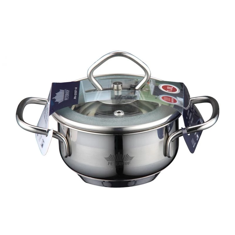 Peterhof edény 2 liter Űrtartalom: 2 liter Anyag: rozsdamentes acél Tető anyaga: Üveg Az edény Indukciós főzőlapon használható! Méret: Magasság: 9,3 cm Átmérő: 16 cm Súly: 1010 gramm Az edény tisztítását semleges, folyékony mosogatószerrel javasoljuk! Ajánljuk: A konyha szerelmeseinek, főzéshez.