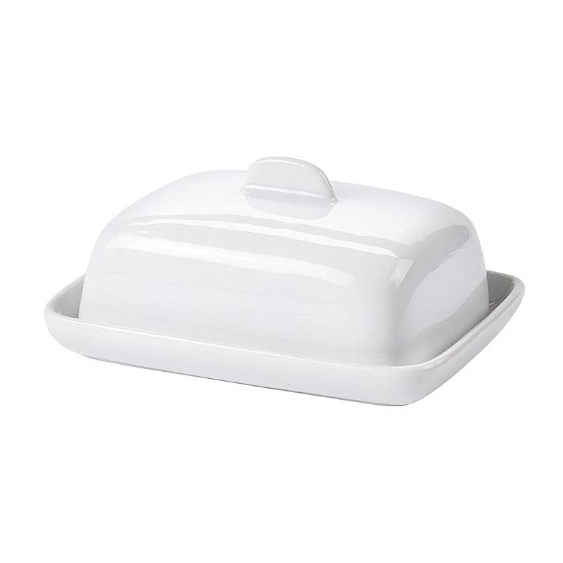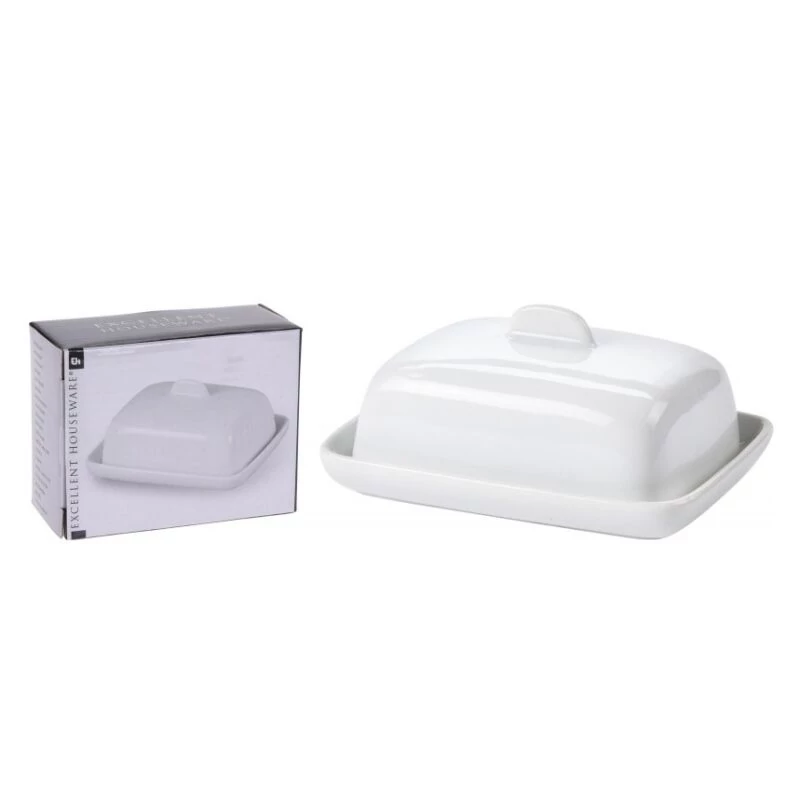 | Porcelán vajtartó A fehér vajtartó porcelánból készül. Mikrohullámú sütőben használható és mosogatógépben mosható, de tökéletes megjelenésének megőrzése érdekében a kézzel történő mosogatását javasoljuk. Méretei: Tálca: 9.4 cm x 7.6 cm x 1.2 cm Vajtartó búra: 8 cm x 6.1 cm x 3.9 cm Teljes magasság: kb. 4.3 cm Szélessége: Bruttó súlya: 180 g Tisztítása: semleges folyékony mosogatószerrel mossa el. Kerülje a karcolódást okozó szerek és eszközök használatát. | |