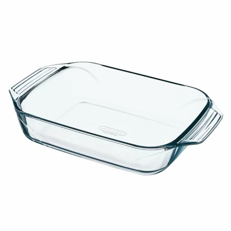 Boroszilícium-dioxid üvegből készült téglalap alakú serpenyő az Irresistible sorozatból, mely egyedülálló tulajdonságokkal rendelkezik: