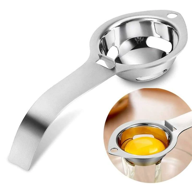 Használata:Helyezze egy tál vagy bögre peremére. Üsse a tojást a szétválasztó közepébe. A fehérje az edénybe folyik, a sárgája a szétválasztóban marad.