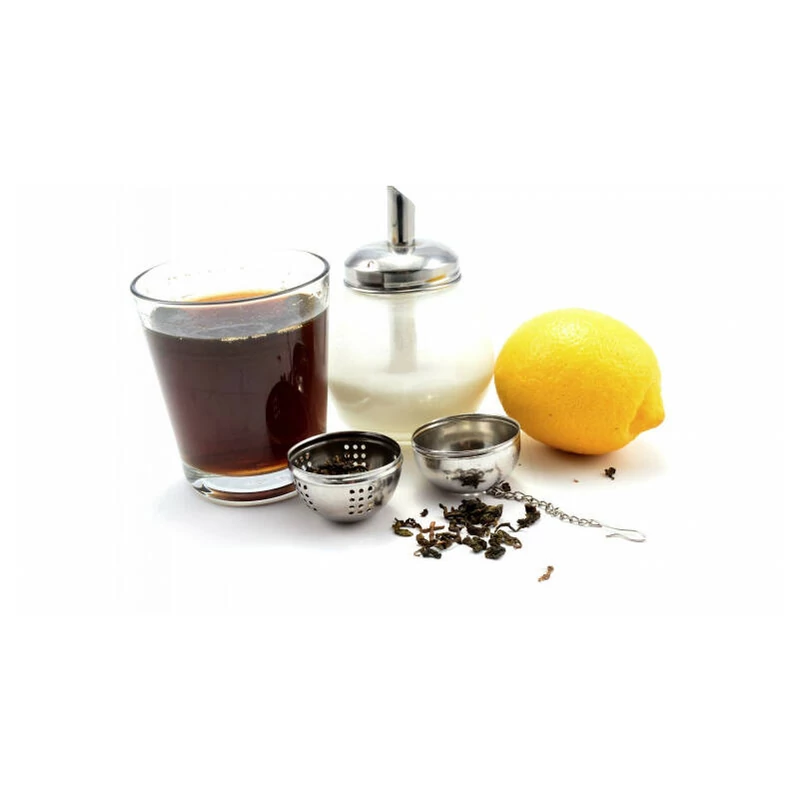 | Teatojás / Teafilter Anyaga: rozsdamentes acél Teatojás: 4.5 cm x 4.2 cm Lánc: 14 cm Bruttó súlya: 22 gramm | |