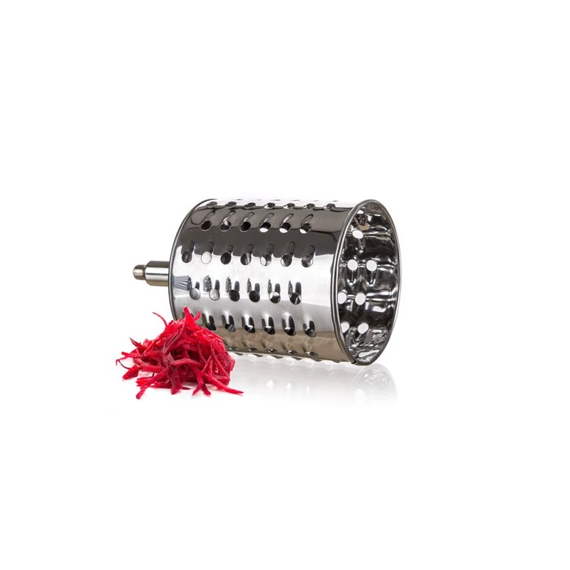 A CULINARIA univerzális daráló kiváló választás mindazok számára, akik egyetlen eszközben keresik a sokoldalúságot. A készülékhez tartozó 5 különböző daráló dob lehetővé teszi kemény sajtok, dió, csokoládé, mandula, valamint zöldségek, mint répa, káposzta, cékla, uborka és más szeletelését vagy reszelését.