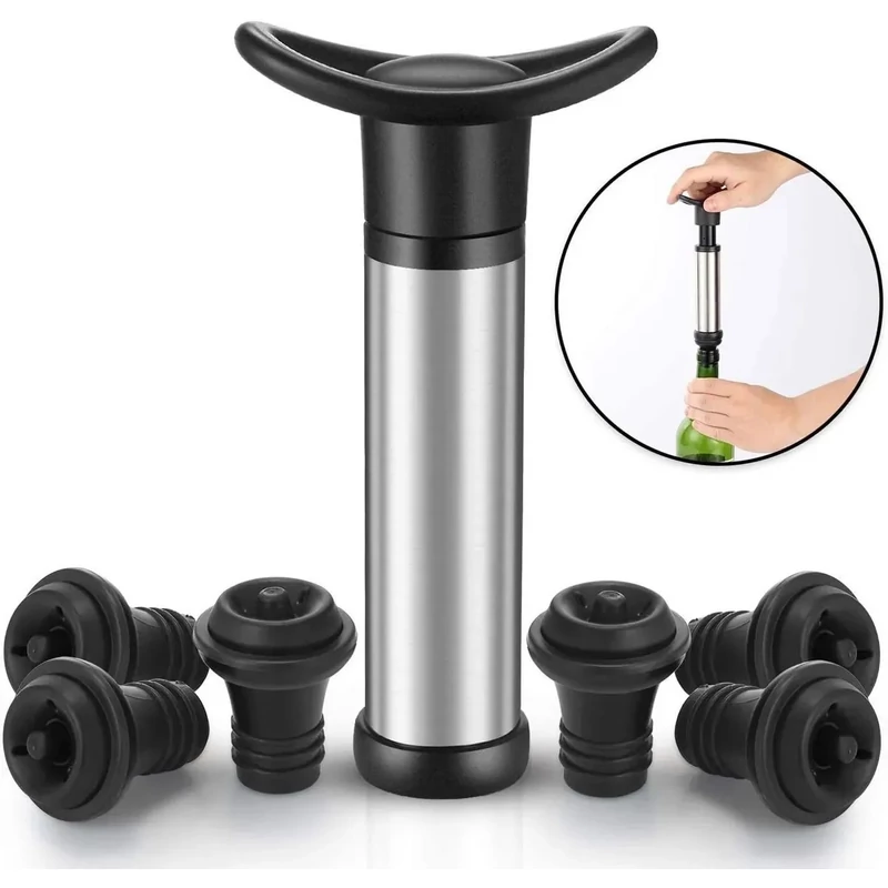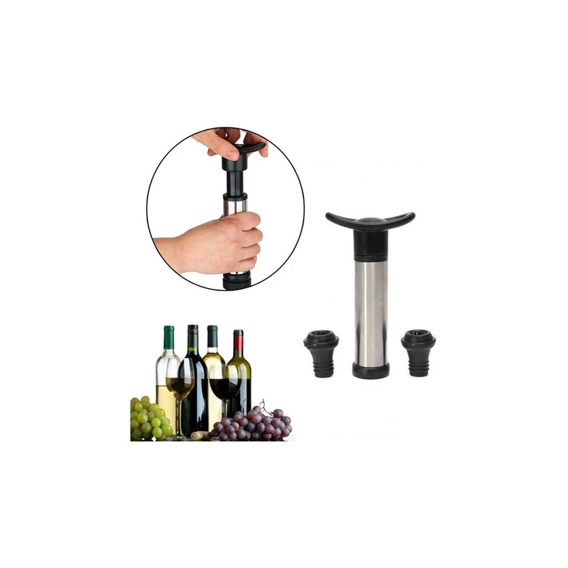 CULINARIA vákuumpumpa + 2 lezáró dugó, a vákuumpumpa a felbontott bor palackjában lévő levegő eltávolítására szolgál és lehetővé teszi a megmaradt bor tárolását, a vákuumnak köszönhetően a bor tovább megőrzi ízét és illatát.