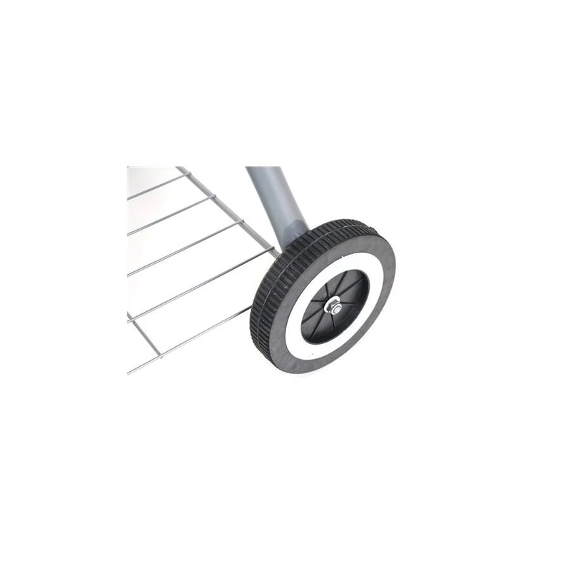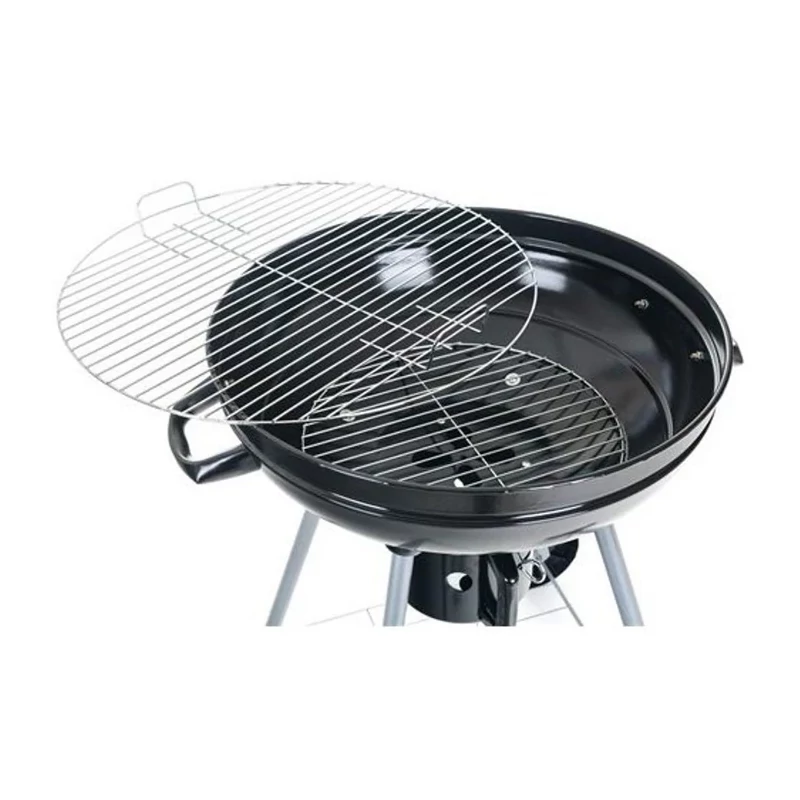 A két kerekének köszönhetően könnyedén mozgatható, az oldalán elhelyezett 3 kampós tartó pedig praktikus megoldást nyújt a grillező eszközök tárolására. A stabilitást erős, 4,5 cm átmérőjű lábak biztosítják, míg az alsó tárolópolc extra helyet kínál. A kivehető nyeles hamutartó megkönnyíti a tisztítást, a mellékelt fogantyúk pedig a rost kényelmes kezelését teszik lehetővé.