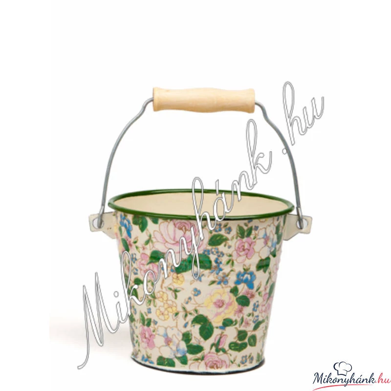 Zománcozott vödör Űrtartalma:1000 ml Anyaga: zománcozott acéllemez, fém, fa Méretei: Magasság 13,3 cm Felső átmérő: 14,2 cm Alsó Átmérő: 11,8 cm Súly: 325 gramm Tisztítása: Semleges folyékony mosogatószerrel mossa el. Kerülje a karcosodást okozó szerek és eszközök használatát.Ne áztassa! |