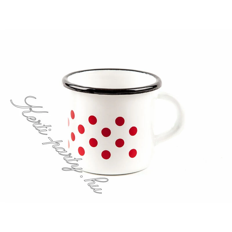 Zománcozott bögre Űrtartalma: 250 ml Magassága: 7.2 cm Átmérője: 8.3 cm Szélessége füllel: 11.7 cm Súlya: 110 gramm Tisztítása: semleges folyékony mosogatószerrel mossa el. Kerülje a karcolódást okozó szerek és eszközök használatát! Ne áztassa! |