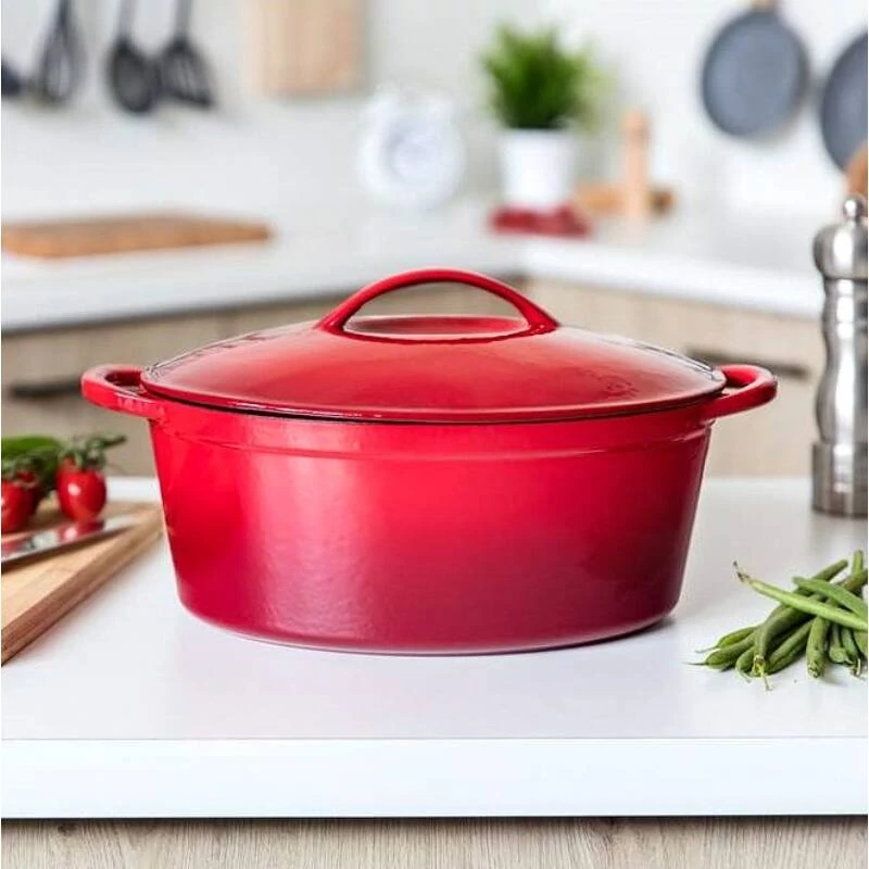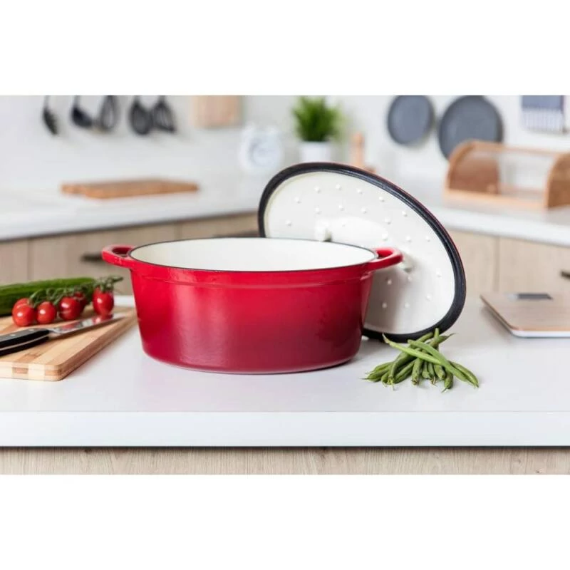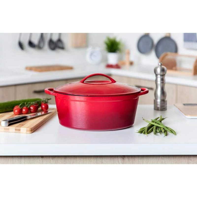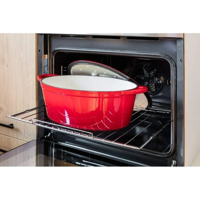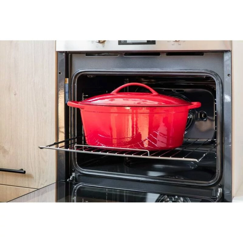 A zománcozott öntöttvas sütőtál egy rendkívül tartós, hosszú élettartamú konyhai eszköz, amely kiválóan alkalmas sütőben vagy főzőlapon történő sütésre, főzésre és párolásra. A 6,7 literes űrtartalom bőséges helyet biztosít akár nagyobb adagok elkészítéséhez is.